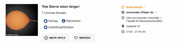 Das unterhaltsame Programm wird einmal am Mittwoch, den 17.12.2025 um 9 Uhr und einmal am Donnerstag, den 18.12.2025 um 11 Uhr gezeigt. Wir bitten dringend um Anmeldung per Mail, um Plätze garantieren zu können. Dabei ist die Anzahl der Personen und der gewünschte Termin natürlich die wichtigste Info. Mails bitte an martin.feneberg@ovgu.de .