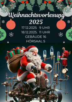 Das Institut lädt wieder zur Weihnachtsvorlesung 2025 ein! Es wird dieses Jahr zwei Termine geben, da ja letztes Jahr der Hörsaal tatsächlich bis auf den allerletzten Platz gefüllt war. Achtung, der Termin am Mittwoch ist bereits voll ausgebucht, wir haben noch einige freie Plätze am Donnerstag.